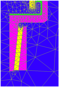 La première étape fut de mettre en place l'assistance au maillage qui permet d'obtenir un maillage adapté à la géométrie du problème.