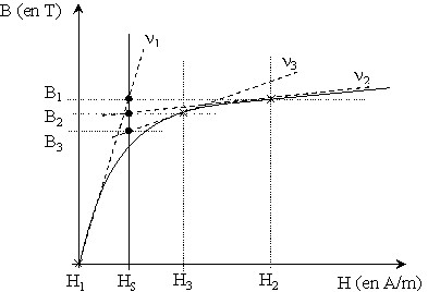 On peut dire que résoudre l'équation 2 est équivalent à trouver B pour H = Hs sur la caractéristique B(H). Hs est le champ dû au courant source Js.