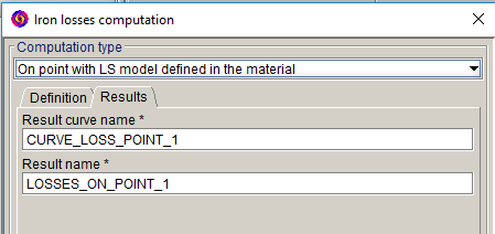 Le calcul de pertes fer LS sur point donne en sortie les résultats suivants