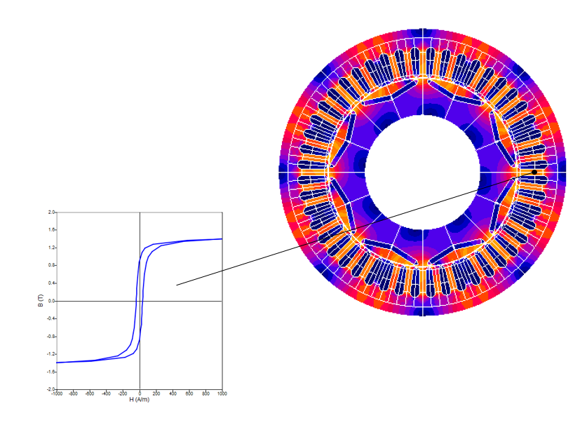 Figure 1. Cycle d'hystérésis obtenue au milieu de la dent du stator sur une machine à aimants permanents.