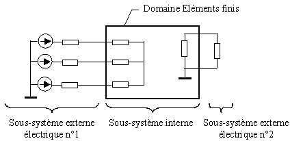 On appelle sous-système externe électrique, la « partie externe » d'un circuit électrique, c'est à dire l'ensemble des composants électriques autres que les composants de couplage EF*.