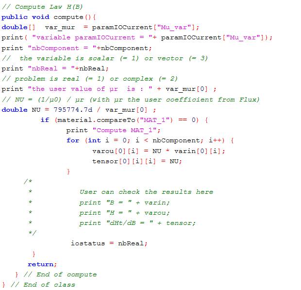 Taper le code Groovy ci dessous dans la sous fonction « compute »( public void compute()) : Le paramètre utilisateur est paramIOCurrent["Mu_var"]. Note: Dans la clé, « Mu_var » la première lettre