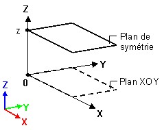 | 3D | les plans de symétrie doivent correspondre à des plans principaux du repère de définition du domaine d'étude (XOY, YOZ et ZOX) |