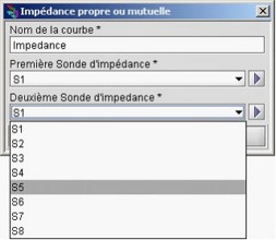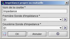 Donner un nom à la courbe 2D et choisir les deux sondes entre lesquelles tracer l'impédance. Si la même sonde est choisie dans les deux cases, une courbe d'impédance propre sera tracée ; autrement ce sera une courbe d'impédance mutuelle. |