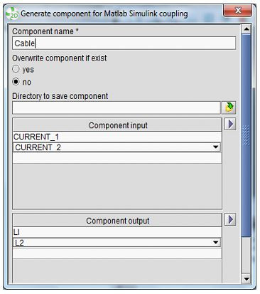 The dialogue box " Generate component for Matlab Simulink coupling" is presented below: