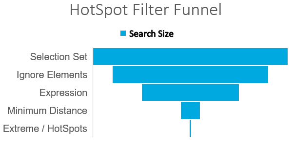 • Data filtering rules for Selection set, ignoring specific element types, threshold values, maintaining a minimum distance between hotspots and limiting the search to a number of extreme top or bottom values.