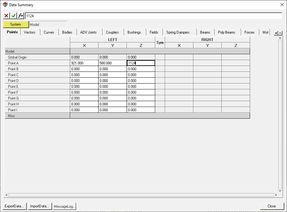 These fields are available in entity panels such as: Bushings, Motions, Forces with
