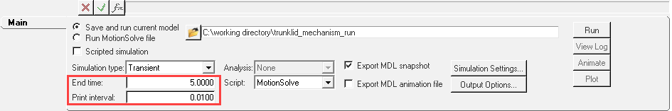 Upon clicking Run, MotionSolve is invoked and solves the model. The