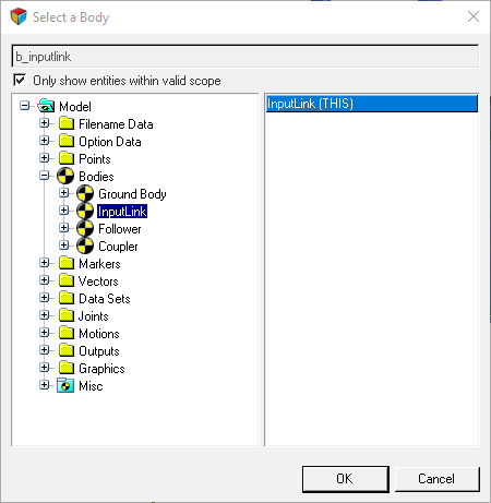 Follower, Coupler, and Input Link. In this example, the Ground Body is