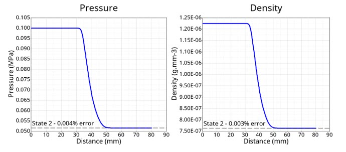 Values of all thermodynamics quantities (pressure, mass density, etc.) in the final state after the expansion fan can be computed, and the numerical results compared to analytical values.