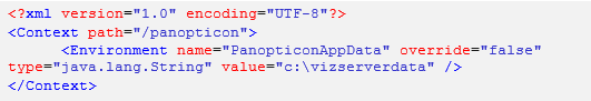 4. Copy the extracted panopticon.xml file into the Tomcat config folder (\Apache Software Foundation\Tomcat 9.0\conf\Catalina\localhost). This file contains the following information: