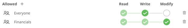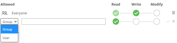 The user or group is added under the Allowed list.