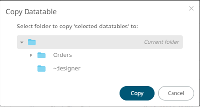 The Copy Datatable dialog displays with the folder or subfolders the user is allowed to copy the data template.