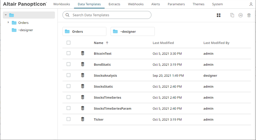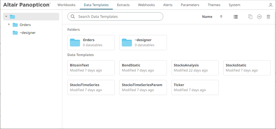 On the Toolbar, click Grid View . The folders and data templates are displayed as thumbnails.