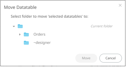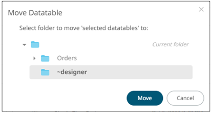 The Move Datatable dialog displays with the folder or subfolders the user is allowed to move the data template.