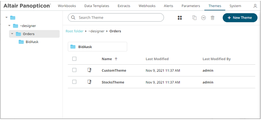 Users with a Designer role are allowed to move themes to another folder or subfolder where they have permission.