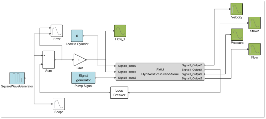FMU Importブロックは、FMUブロックのインポートとシミュレートを可能にします。