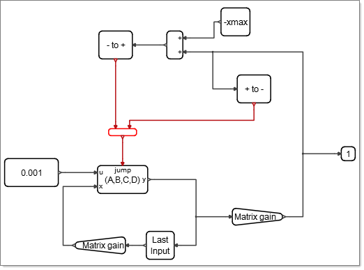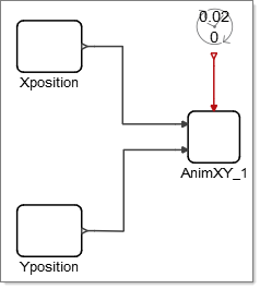 メインダイアグラムが閉じ、スーパーブロック内部のダイアグラムが画面上に表示されます。この方法で、スーパーブロックの各層を降りて行くことができます。次のイメージは、bouncing_ballモデルのXpositionスーパーブロックを示しています。