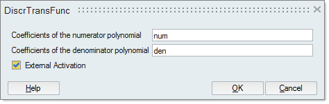 4. DiscrTransFuncブロックをダブルクリックし、次のようにパラメーターに値を入力します。