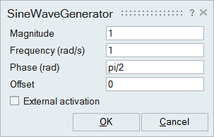 SineWaveGeneratorブロックのパラメーターを設定します。