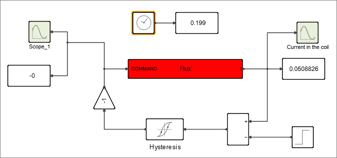 プランジャーの3次元Fluxモデルのコイルに供給する電流をヒステリシスで調整するActivateモデルを作成し、これらのモデルの連成シミュレーションを実行します。