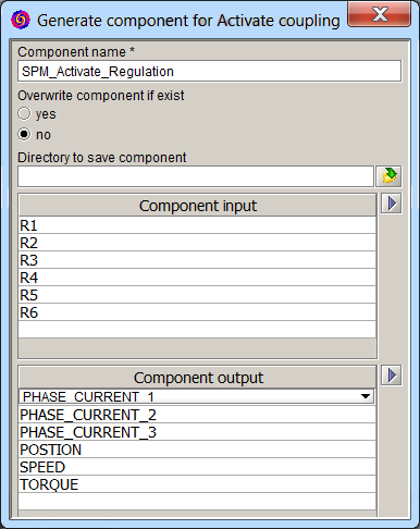 このSPMモーターの出力は、センサー、数式(荷重と結合)、およびパラメーター(位置、速度、加速度)を通じて値を取得するスカラー入出力設定です。