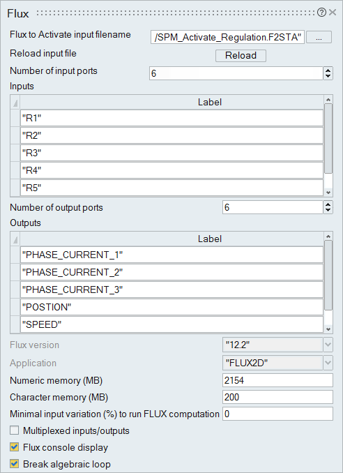 このSPMモーターの入力は複合領域のパラメータで定義されており、以下の各要素で構成されています。