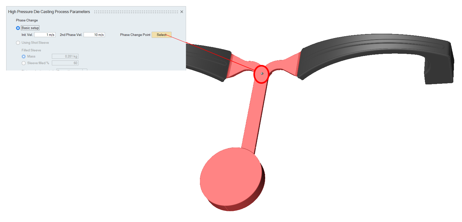 then click a point on the runner.Tip: The phase change point needs to be on the runner, before the material enters the mold.