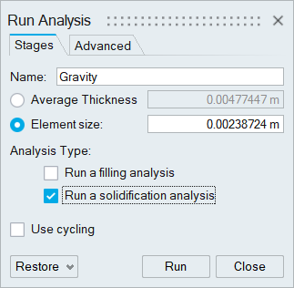 Note: The solid fraction value is set to 0.7 by default. In most cases, this corresponds to the value at which the liquid stops flowing. -