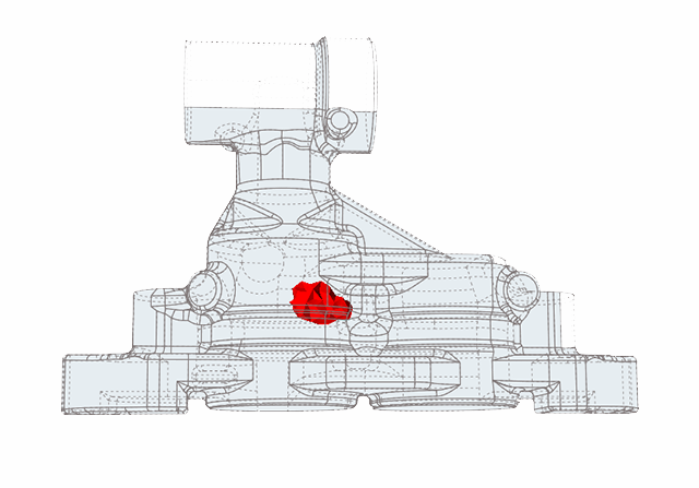 Parts are automatically detected and highlighted based on your cursor position. Since there is a single geometry the entire cast part will be automatically highlighted.The selected part is highlighted red.