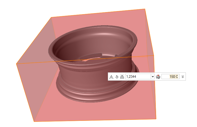Parts are automatically detected and highlighted based on your cursor position. Since there is a single geometry the entire cast part will be automatically highlighted.The selected part is highlighted red.
