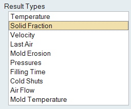 Solid Fraction results allow you to determine if there will be any solid areas during filling. A value of 0 corresponds to a completely liquid material, while a value of 1 corresponds to a completely solid material.