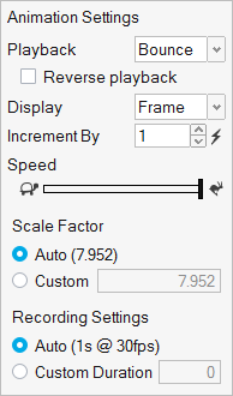 - Select whether to play the animation on a continuous Loop, Once, or Bounce (between forwards and backwards). Select the check box to Reverse Playback.
