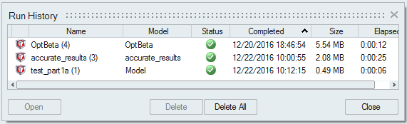 - To open the directory where a run is stored, right-click the run name and select Open Run Folder. The default directory where the run history is stored can be changed in the Preferences under Run Options.