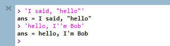 Strings are any object enclosed by single quotes. For example: