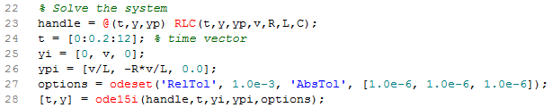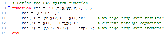 This tutorial will solve the series RLC circuit, subject to a constant voltage by formulating it as a differential algebraic equation.