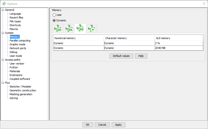 The first version of Dynamic memory management has been integrated in Flux 2020 in Beta version. By default, User (or static) memory was activated in supervisor options. For Flux 2021, we continued to work on algorithms to improve the robustness and performance of Flux with the Dynamic memory mode.