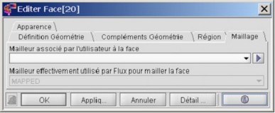 Après affectation d'un mailleur aux faces / volumes, l'onglet Maillage de la boîte de dialogue de l'entité géométrique (face / volume) est mis à jour.