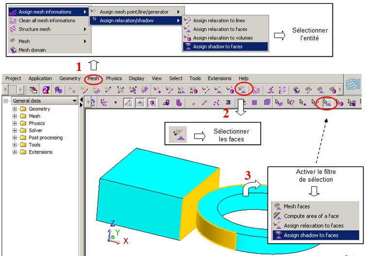 | 1 | Activer la commande Affecter ombrage aux faces (cf. bloc suivant) | |