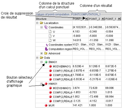 | Colonne d'un résultat | Un calcul ponctuel est évalué pour chaque point défini et une table de résultats correspondante est affichée. |