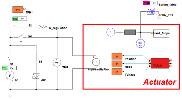 Le but de cette modélisation est d'observer différentes phase de fonctionnement de l'actionneur avec une unique simulation transitoire : la phase de fermeture, la phase de régulation et la phase d'ouverture de l'actionneur.