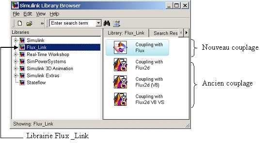 A l'ouverture de Matlab Simulink via le superviseur de Flux (obligatoirement), le nouveau bloc « Coupling with Flux » est ajouté à la librairie de Simulink.