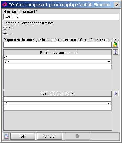 La boîte de dialogue Générer composant pour couplage Matlab Simulink est présentée ci-dessous :