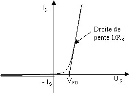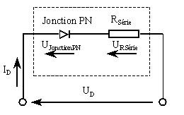 Si l'on considère le schéma équivalent de la diode, représenté sur la figure ci-dessous, la tension UD aux bornes de la diode est donnée par :