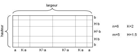 - les concentrations K (selon la largeur) et H (selon la hauteur) de ces éléments. Ces valeurs, qui doivent être positives, représentent le rapport entre la taille de deux éléments successifs.