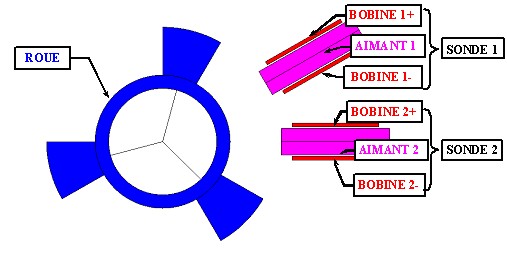 • deux sondes composées chacune d'un aimant (en ferrite) et d'une bobine