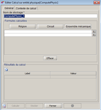 - Pour valider définitivement le calcul l’utilisateur doit valider cette boite de dialogue principale en cliquant sur Calculer (mais il est possible d’ajouter d’autres grandeurs de type Région, Circuit ou Ensemble mécanique)