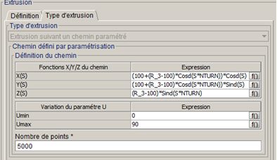 L'opération géométrique Extrusion suivant un chemin paramétré permet d'extruder une ou plusieurs faces (appartenant à une esquisse ou appartenant à un objet) d'une même esquisse selon un chemin paramétré.