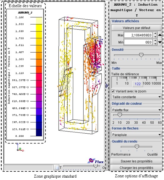 Zone graphique standard Zone contenant la vue géométrique du dispositif avec l'affichage des isovaleurs calculées.