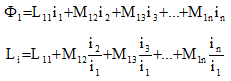Si plusieurs bobines sont alimentées simultanément, l'inductance ainsi calculée est une inductance globale L qui inclut l'inductance propre de la bobine choisie L 11 et les mutuelles inductances dues aux autres bobines alimentées M12, M13...
